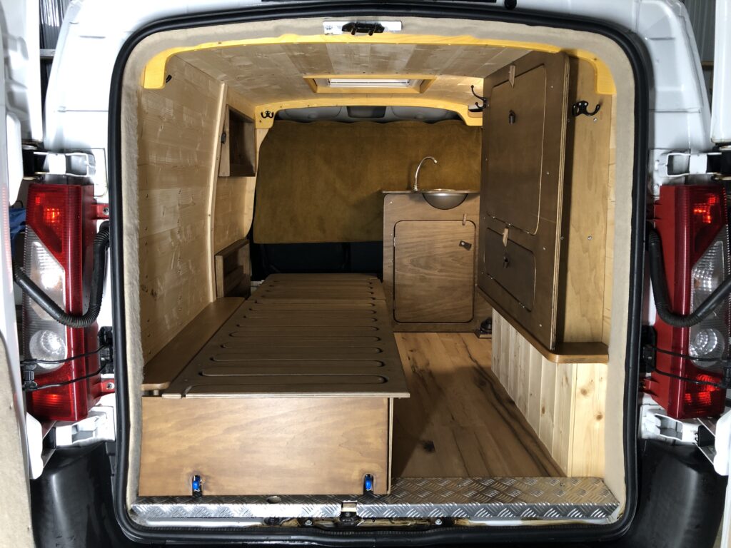 Pour notre premier aménagement de van sur mesure, ou plutôt d’utilitaire, Jumpy II, il a été question de trouver des solutions en rapport avec le volume, H1L1, l’esthétique et le confort.