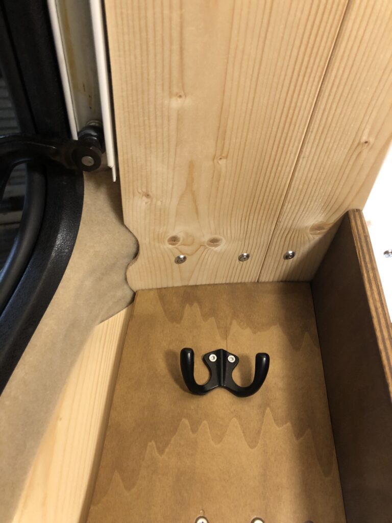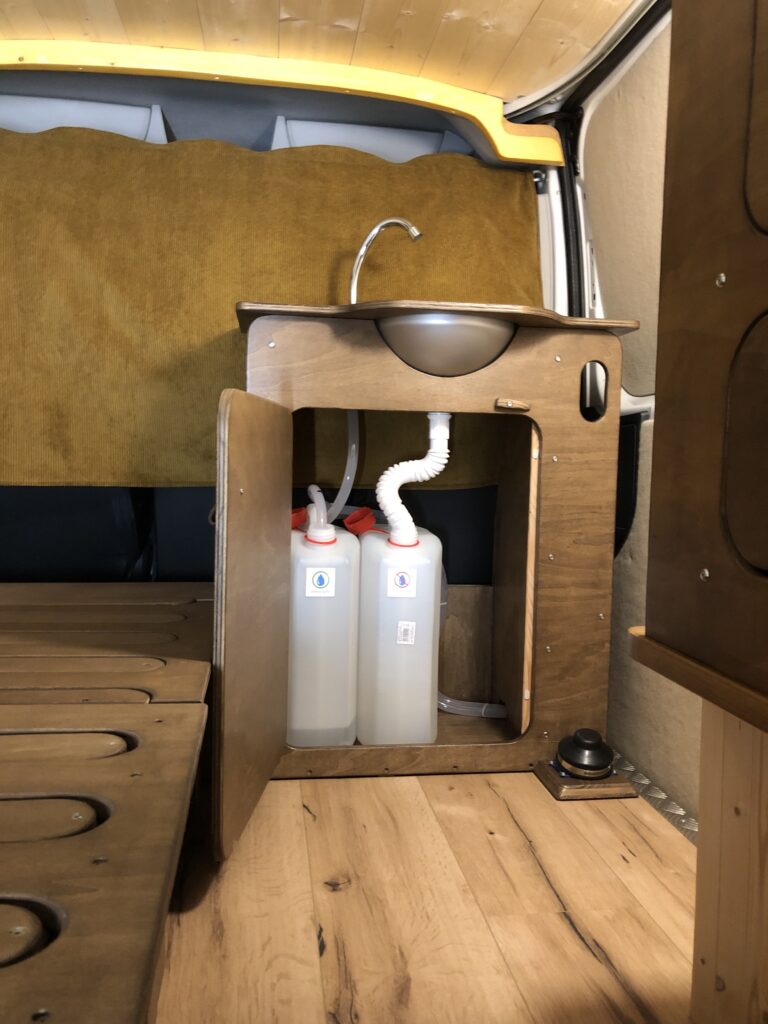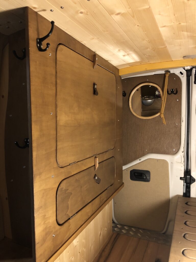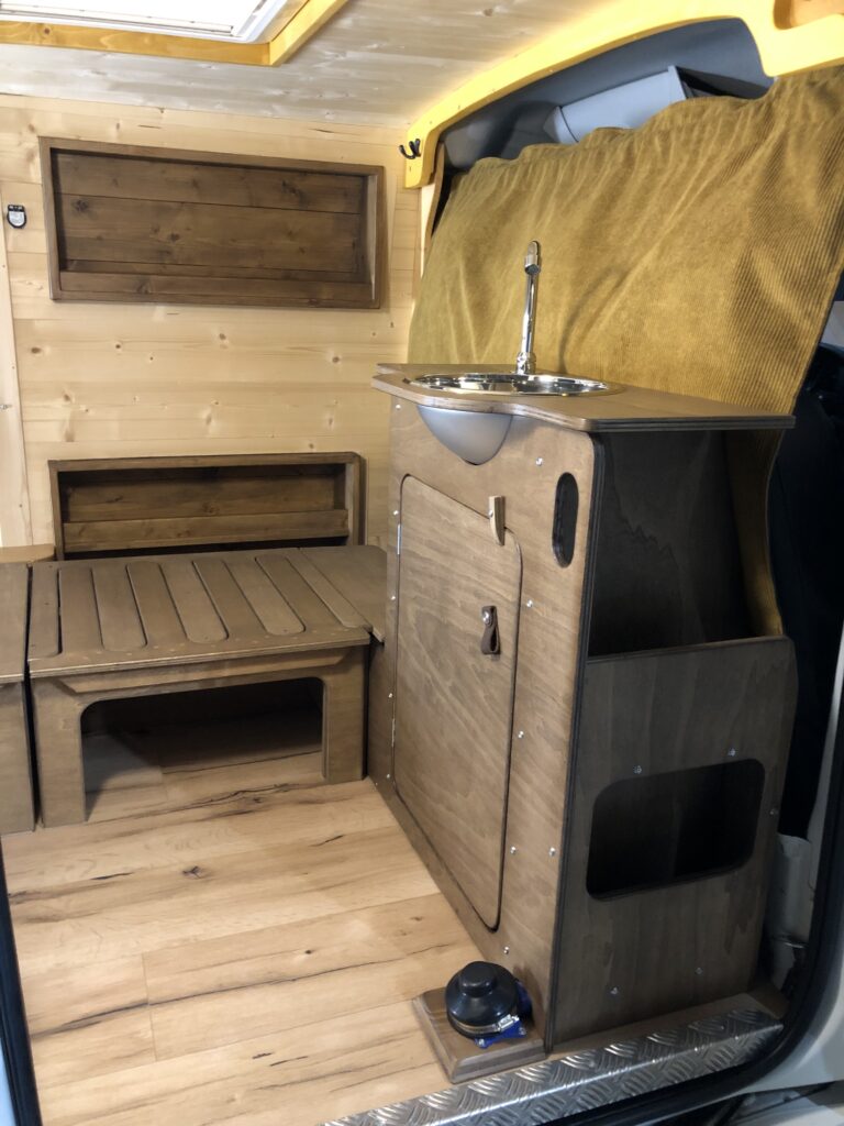Il s’agissait d’avoir suffisamment de place pour se poser, manger, dormir confortablement, avoir de l’eau au robinet, des réserves d’eaux claires et grises, quelques rangements, de la lumière, de quoi recharger un téléphone et quelques accessoires et enfin se mouvoir sans être obligé de tout chambouler.
